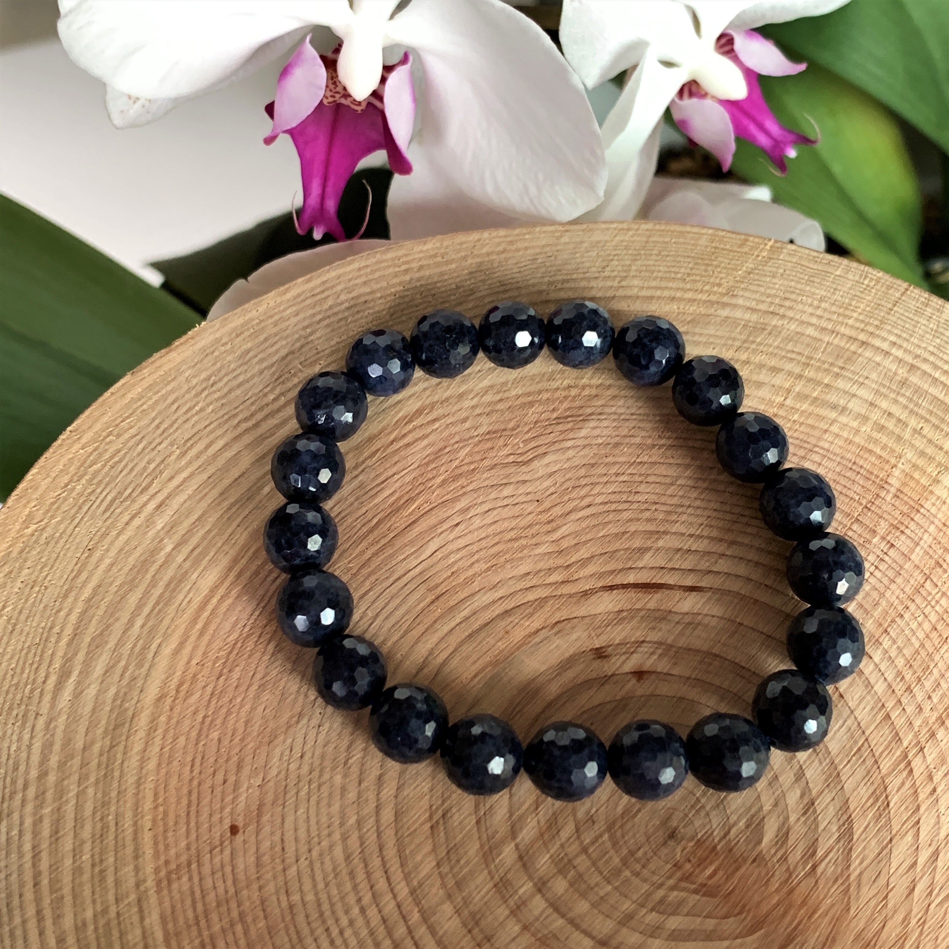 ★9月誕生石 サファイア(9mm)【ブレスレット】128面カット天然石