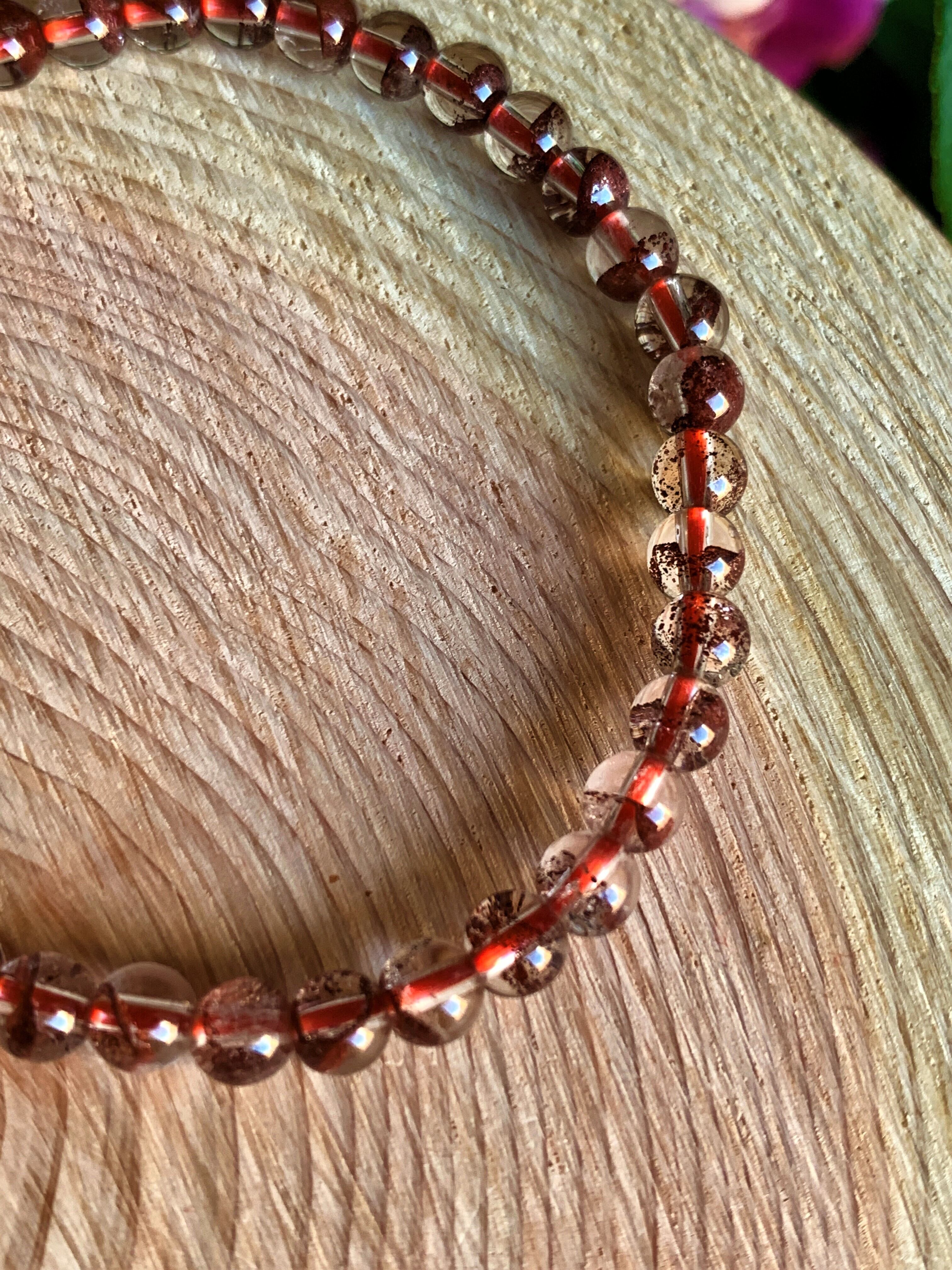 ファントムクォーツ:和名「幻影水晶」のこの石は、石の中に幽玄の山を封じ込めています。水晶の結晶の成長が止まり、また育ち、止まり、育ち・・・を繰り返し、この山々が生まれました。現在と過去と未来の記憶を封じ込めているとされ、絶えない成長と再生の象徴です。大切な愛を育てたい時、仕事や勉強で確実にステップアップしたい時などのお守りにどうぞ。