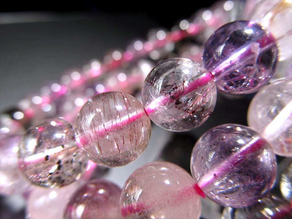 ゲーサイトがたっぷり入った珠、ふんわりミルキーのアメジストなど、様々なタイプのスーパーセブンが混ざったAA+ランクです!