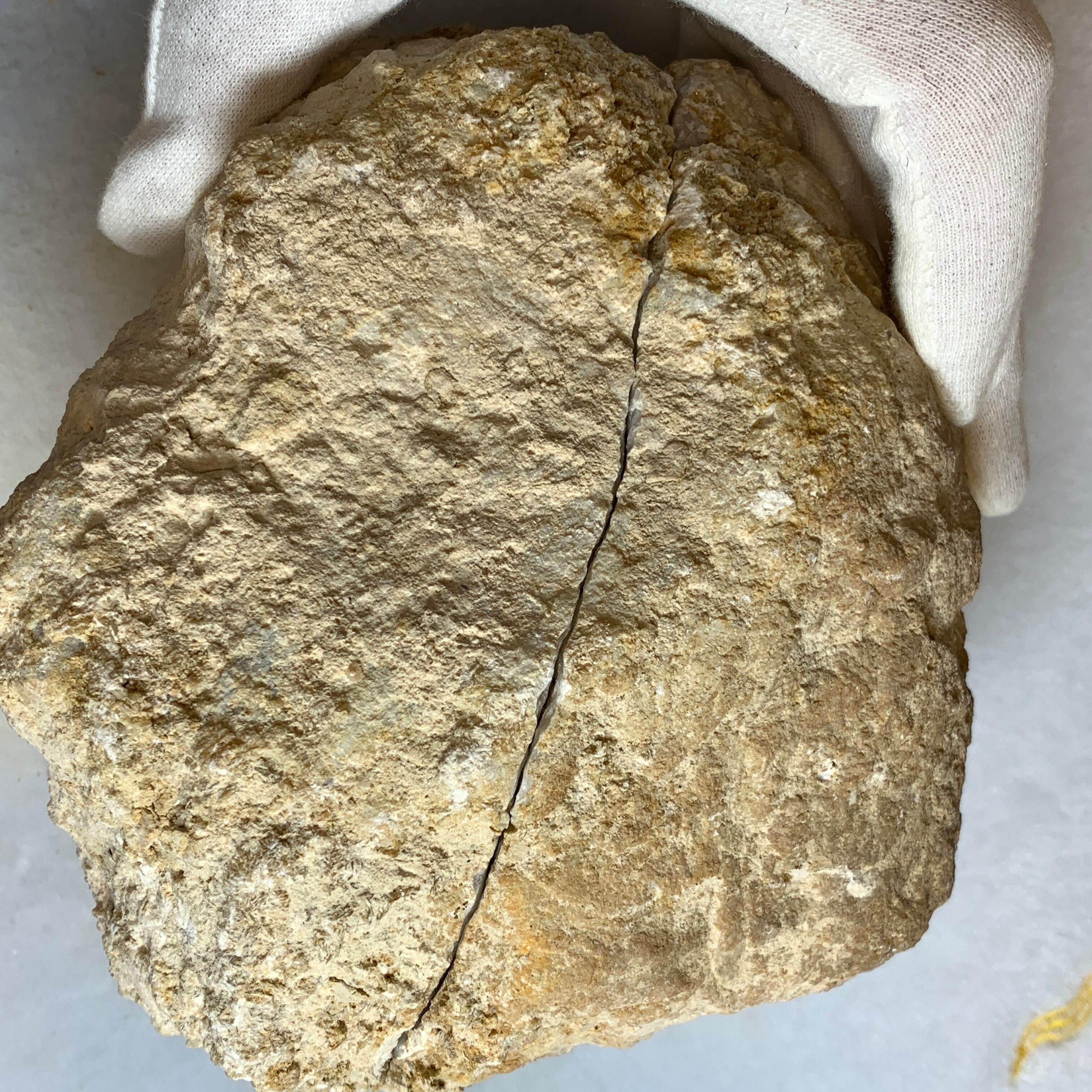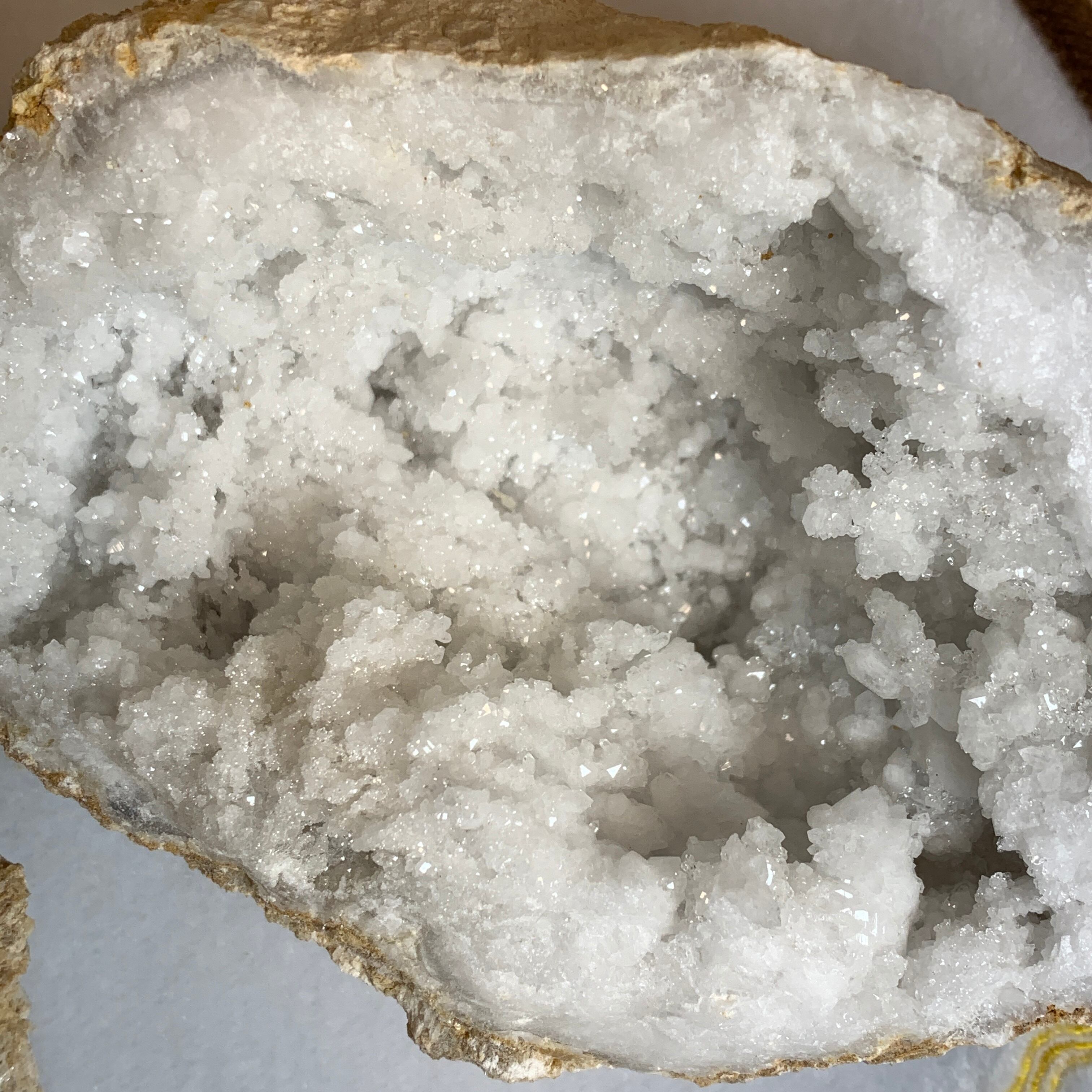 こちらはモロッコ産で、何の変哲も無い石のような外観ですが、内側はキラキラと輝く水晶の結晶で覆われています。