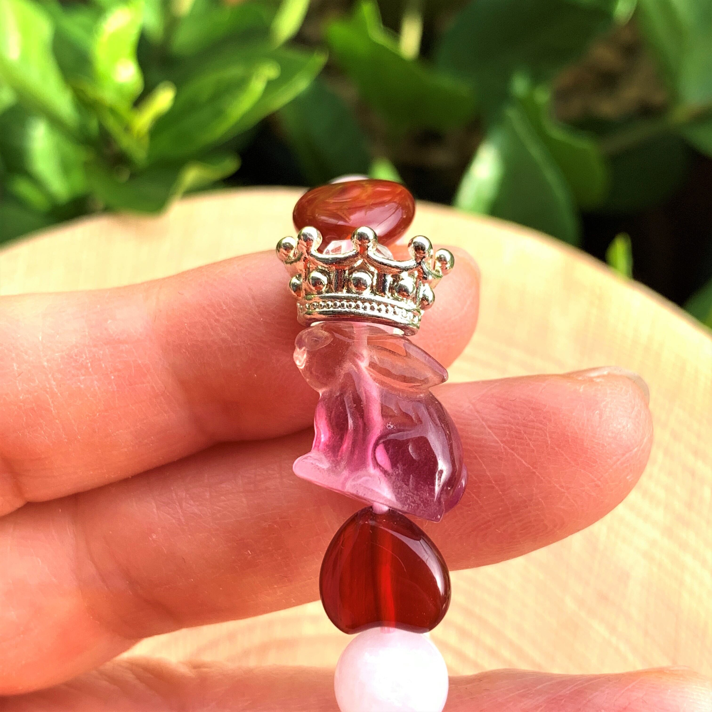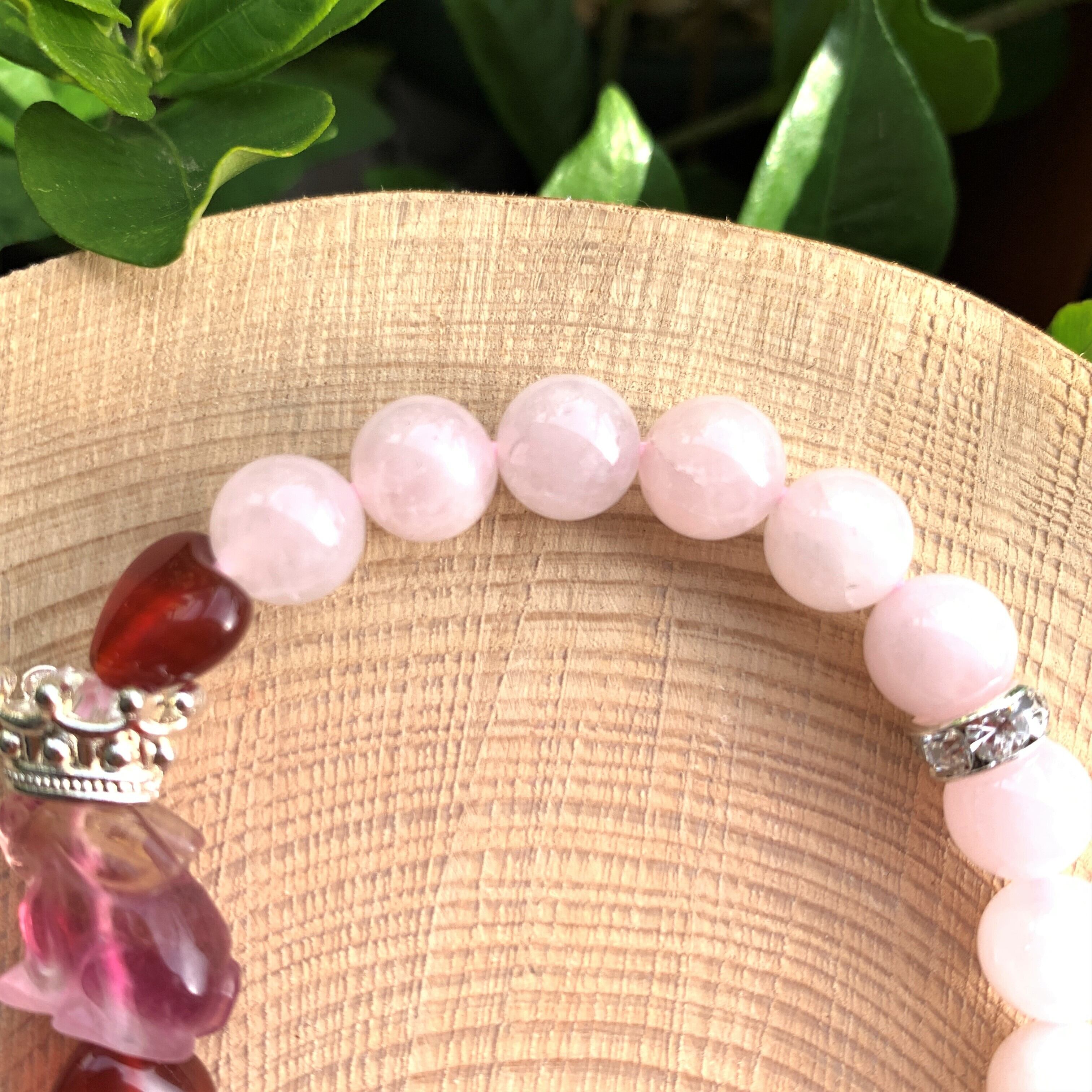 フローライト兎&ローズクォーツ デザインブレスレット 天然石